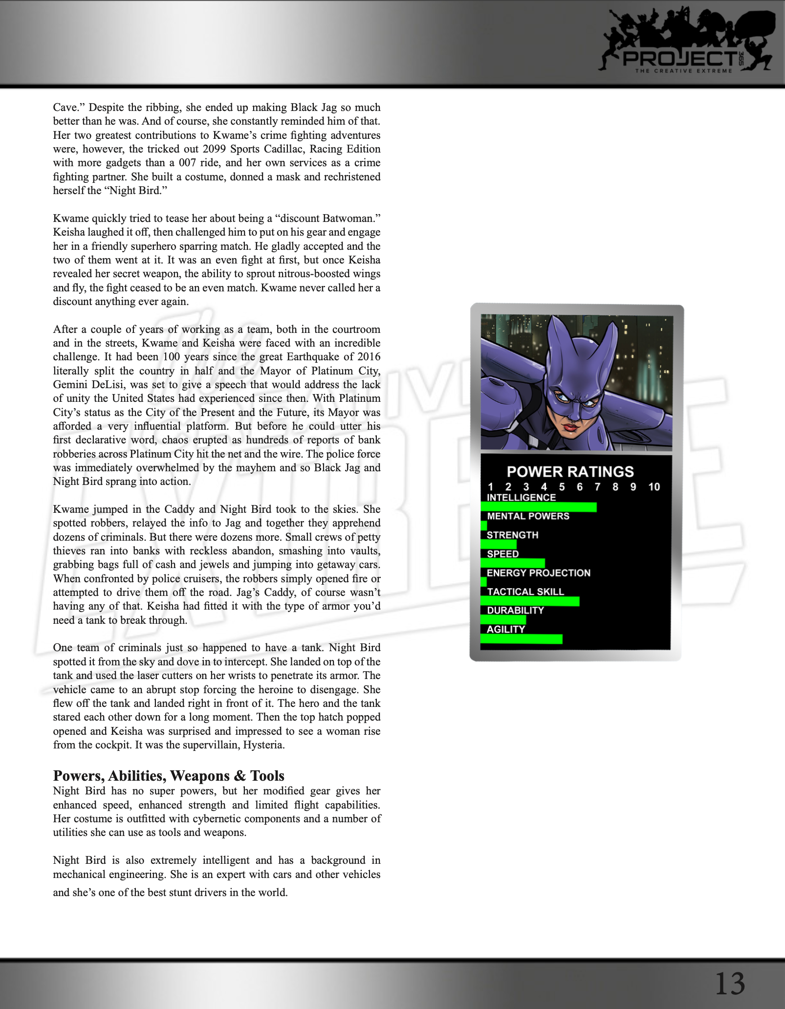 Step into the World of the Creative Extreme with the introductory volume from the Project that started it all! In 2016, we released one original character on our website every day of the year. Each one was accompanied by artwork, a comprehensive backstory, and power rankings. Furthermore, each release added to an overall series of events that tied into an epic 365-chapter saga!